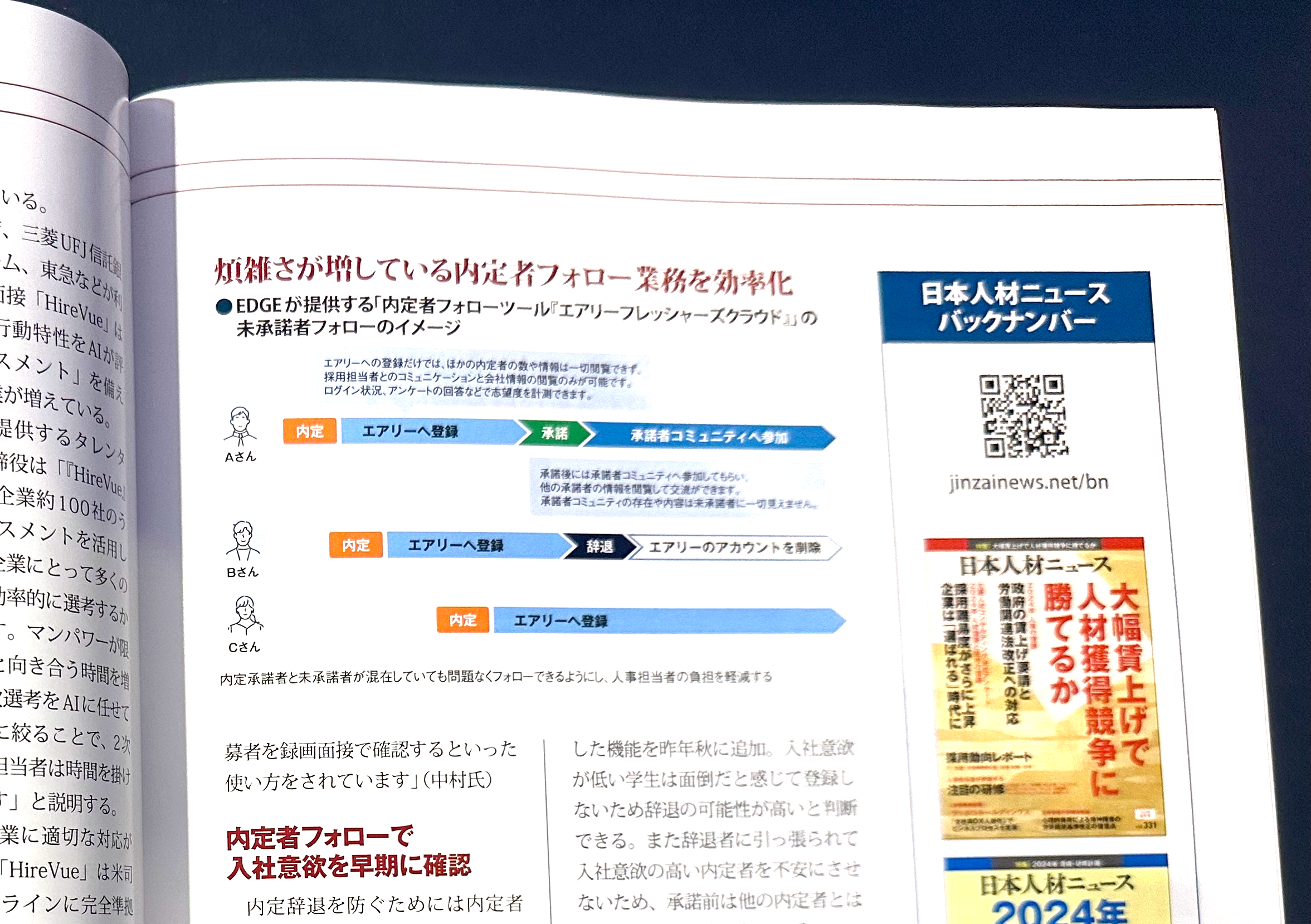 2024年5月10日発行の日本人材ニュースVol332にて、新卒採用における内定辞退防止策について、弊社サービスである「エアリーフレッシャーズクラウド」に関する記事を掲載いただきました。